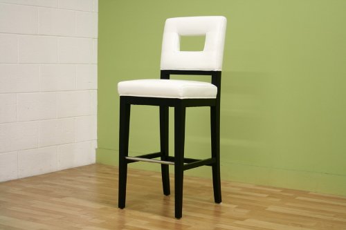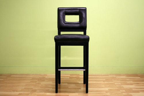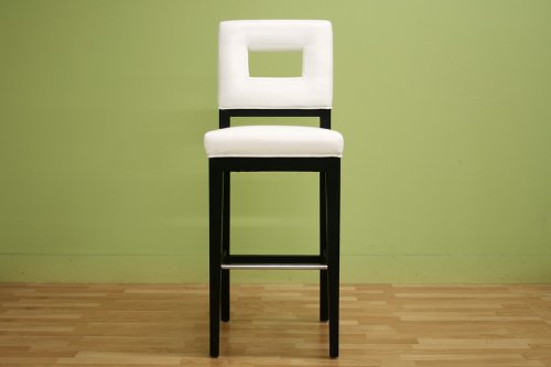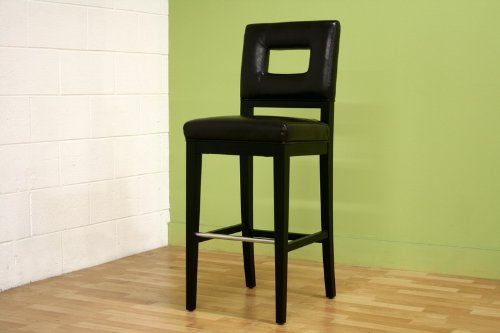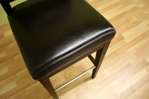 -. Feature : Contemporary, wood-composite bar stool with bonded leather seat and backrest / Durable wood composite construction with foam cushioning / Opaque, non-marking feet to protect sensitive flooring / 17.5"W x 21"D x 45"H / Seat height: 30"