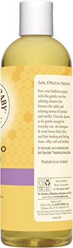 Burt's Bees Baby Bee Shampoo & Wash - Calming is made with natural moisturizers and the soothing scents of aromatic lavender and vanilla to gently cleanse and calm your baby before bedtime. leave your baby's skin silky, soft and super smooth. This tear free formula is 98.9% natural and helps relax mama and baby while it cleanses. Clinically shown to be gentle enough for everyday baby care and its pediatrician-tested. Plus, it contains no parabens or phthalates. Nurture baby's skin naturally with Baby Bee from Burt's Bees.Feature