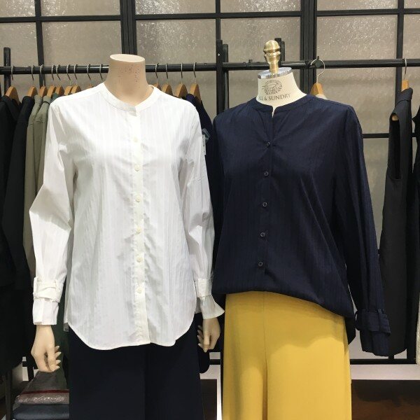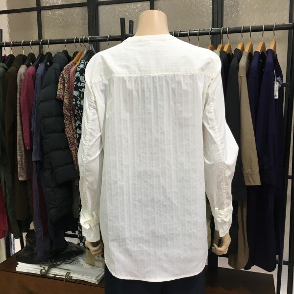 섬세한 줄무늬 느낌의 디테일이 돋보이고 고급스러운 무드가 듬뿍 담긴 헨리넥 블라우스 입니다. 소프트한 소재로 살짝 바스락 거리며 바디를 폭- 감싸 편안하고 자칫 밋밋할 수 있는 디자인에 소매 벨트형식으로 포인트를 주어 색다른 느낌을 들게 해 줍니다^^ 넉넉한 품과 둥글게 팔을 감싸고 떨어지는 롱한 커프스 하지만 벨트느낌의 소매가 군살을 쏘옥- 커버해 내추럴한듯 여리여리한 핏으로 만들어 준답니다 ~ 단독은 물론, 얇은 이너에 살짝 걸쳐도 좋고 아우터나 베스트에 이너로도입기 좋아 소장가치 높은 데일리 아이템으로 추천해요! 총장길이는 55사이즈 기준으로 74.5cm 입니다.