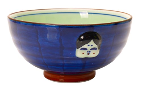 Spiceberry Home Porcelain Bowls, Deep Blue with Face, 4-Inch, Set of 2