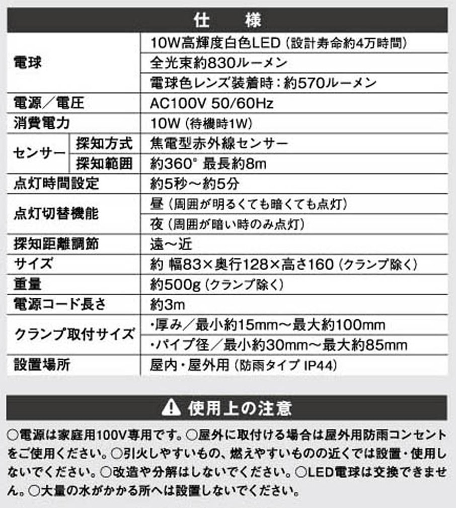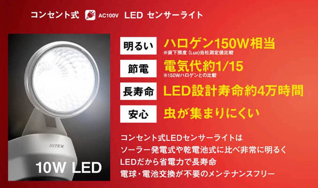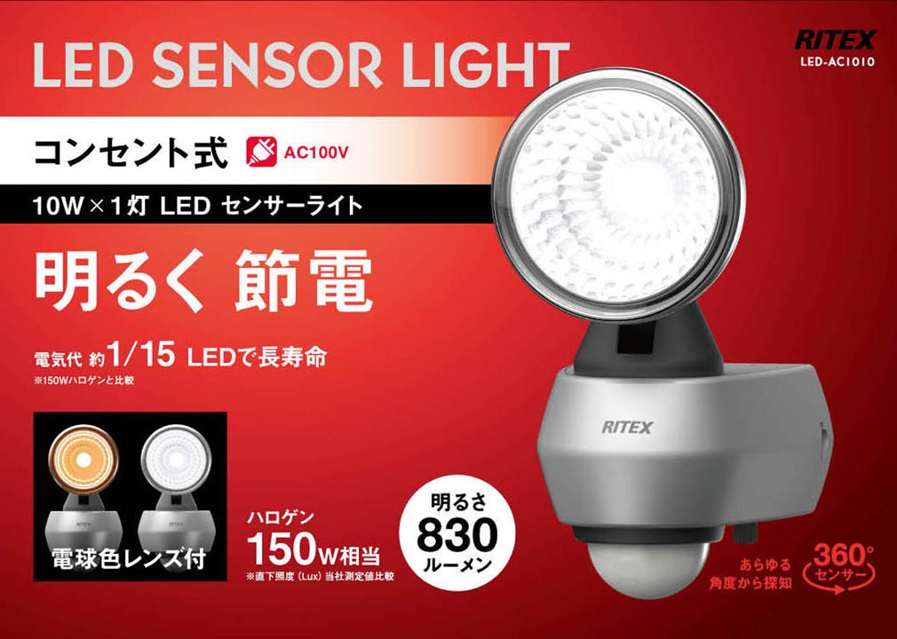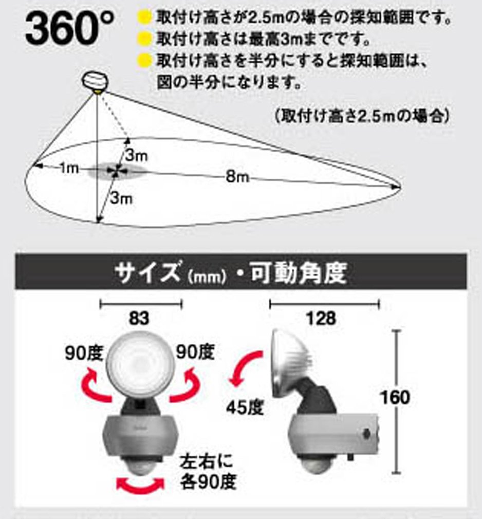 Halogen It has brightness equivalent to 150 W (* 1), and illuminates the surroundings brighter than sensor lights so far.
