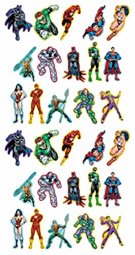 -. Feature : You will receive 30 DC Comic Justice League Large Stickers. There are 15 different designs featuring Wonder Woman, Superman, Batman, Flash, Green Lantern, Aquaman, The Joker, Lex Luthor or Cyborg / Each sheet features 1 large sticker and comes in its own cardboard sleeve. Each sticker measures about 3 inches by 2 1/2 inches. / These are great as party favors for your goodie bags or use them as a party decoration at your next Justice League party! / Show off your DC Comic fandom by putting these on your folders, your laptop or where ever there is a flat surface! / Officially Licensed Product. Made in the USA