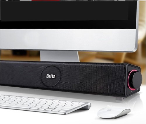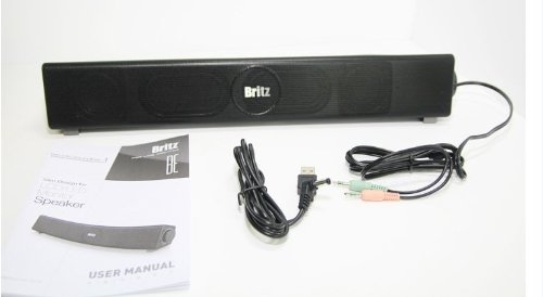 -. Binding : Personal Computers -. Brand : Britz -. Feature : Sound bar style multi-media speaker / Easy to control on/off and volume control / Good match with LCD monitor and digital device / Wall Mount screw holes : Wall mountable / Mic and headphone jack for user -. Label : Britz -. Manufacturer : Britz -. Model : Be-100 -. MPN : Be-100 -. PackageQuantity : 1 -. PartNumber : Be-100 -. ProductGroup : PC Accessory -. ProductTypeName : COMPUTER_COMPONENT -. Publisher : Britz -. Studio : Britz -. Title : Britz Be-100 USB Rechargeable Sound Bar Speaker