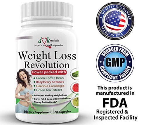 Are you feeling tired, worn out taking other weight loss pills or is your metabolism down in the dumps?Look no further, weight loss Revolution has all the ingredients necessary to boost your energy and metabolism to hep you feel better when loosing weight!! All Natural,100% Safe Ingredients. Best weight loss supplement for women and men that works fast. Healthy weight management for health and fitness Garcinia Cambogia: Formulated to help curb hunger pains, burn belly fat fast and to lose weight quickly, even if you've fought with it for all your life. Natural weight loss supplement with Green Coffee Bean Raspberry Ketones and Green Tea Extract 100% Money Back Guarantee, with nothing to loose but excess weight