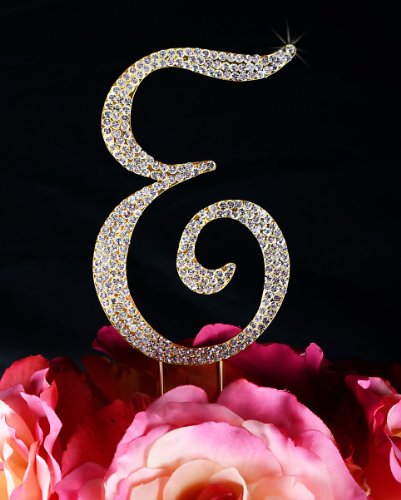 Unik Occasions Sparkling Collection Crystal Rhinestone Monogram Cake Topper - Letter E, Large, Gold