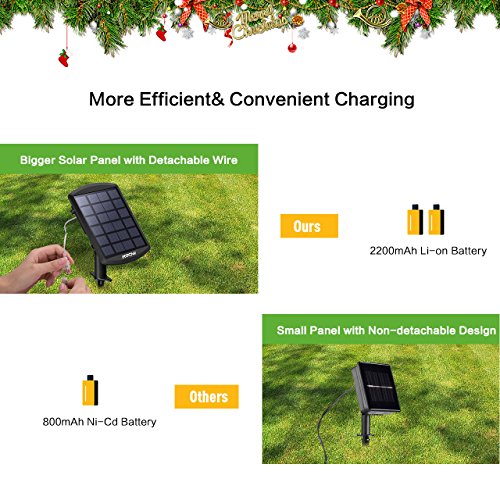 - SOLAR POWERED STRING LIGHTS: Built-in solar powered 2200mAh battery with high energy conversion provide eco-friendly life. Illuminates up to 30 hours at night if the panel absorbs enough sunshine during the day and fully charged