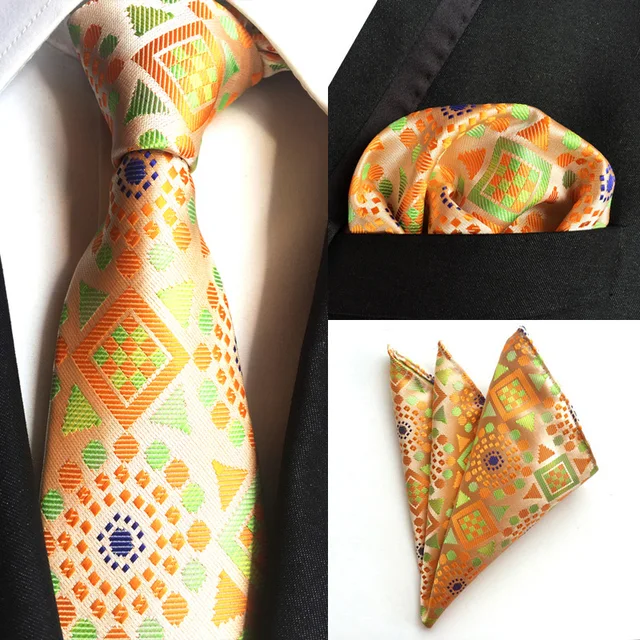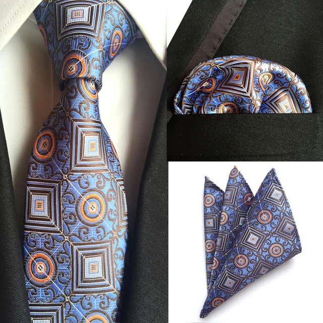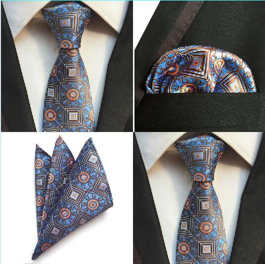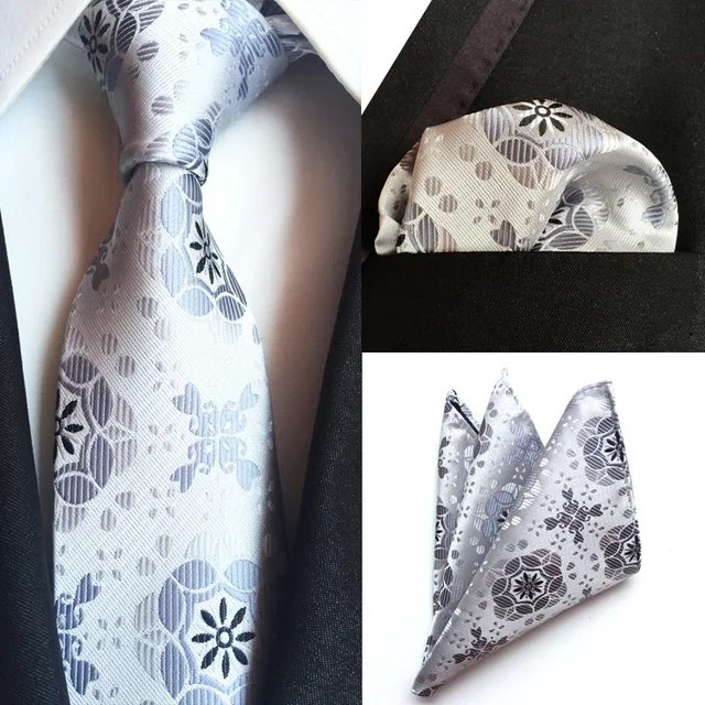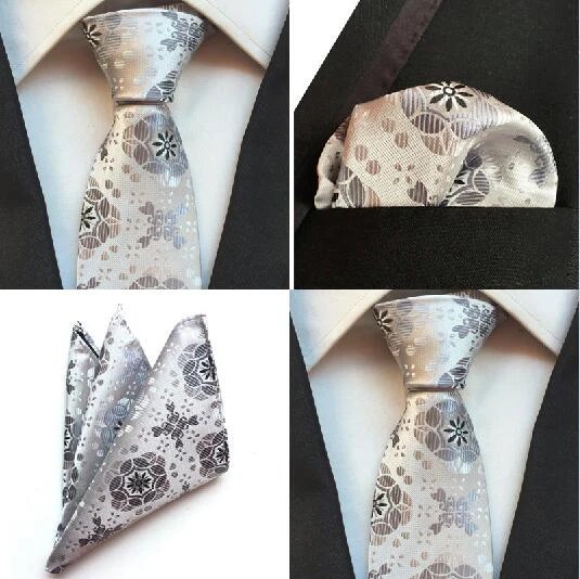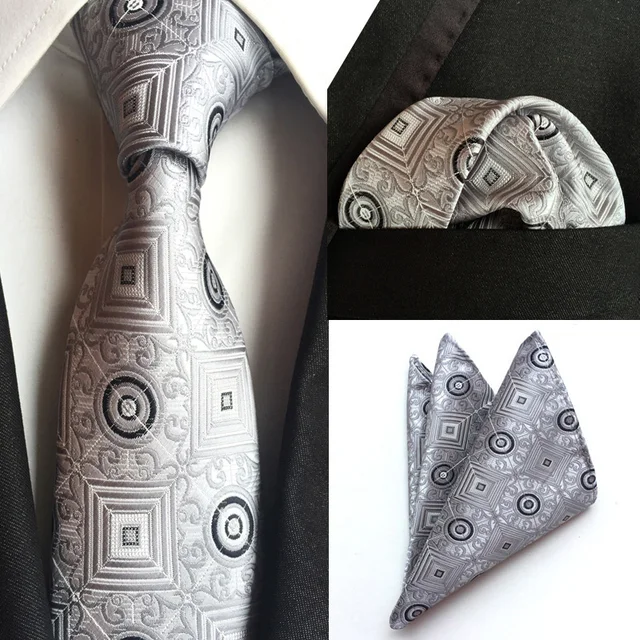 | [해외]공장 클래식 100% 실크 남성 웨딩 파티 연회 넥타이 세트 (손수건 & 넥타이) 회색 다이아몬드 꽃 기하학적 넥타이 손수건 |