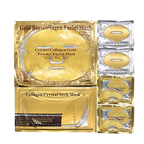 -. Title : Aliver 24k Gold Bio-collagen Face Facial Mask + Gold Collagen Moisturizing Neck Mask + 2pairs Gold Powder Eye Mask+ 2pcs Gold Lip Mask
