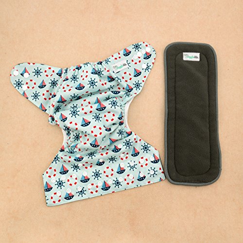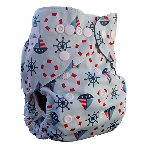 Cloth Diaper - One Size with bamboo inner and 5 layer insert. Nautical Design. Absorbent leak proof aio. Keep Baby them Happy & Dry