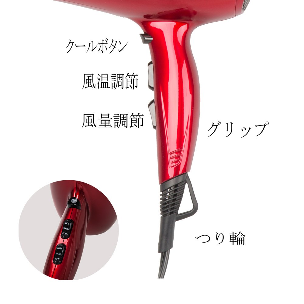 【熱度/風量調節あり】風量2段階、熱量3段階あり、自分の好みにによって調節できます。冷風ボタンもあって、スタイリングに便利です!