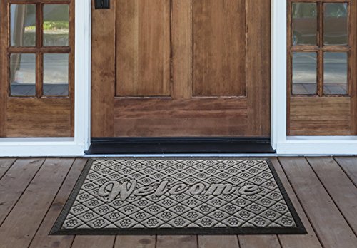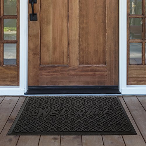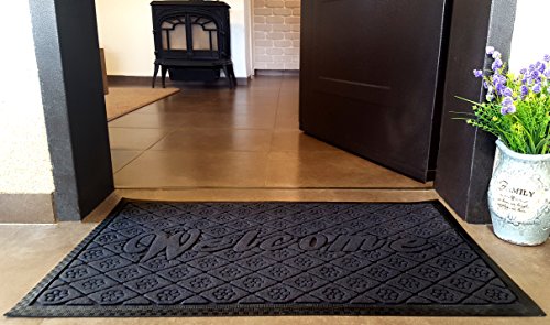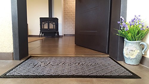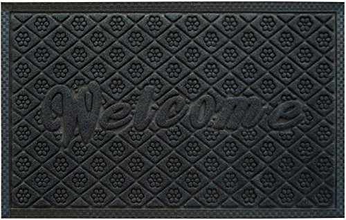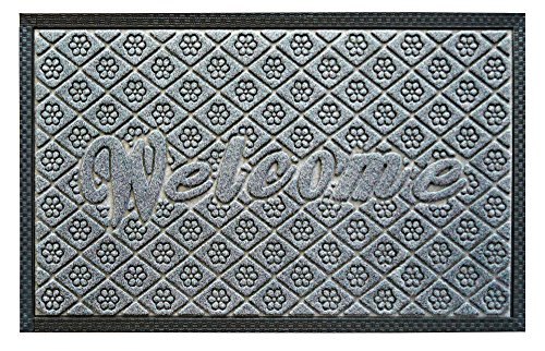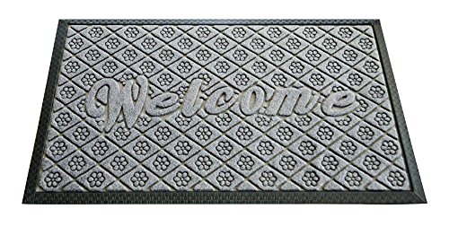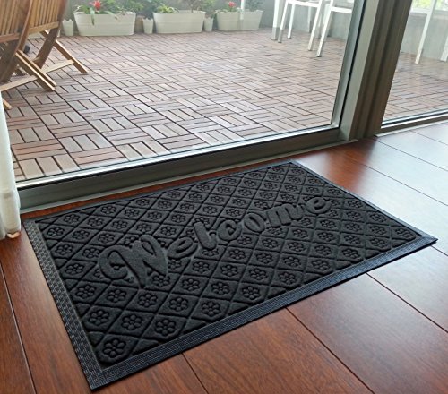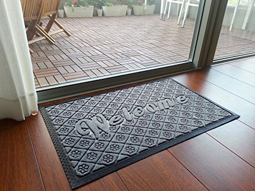 Outdoor Welcome Mat, Grey Rubber Large 19 X 31 Inch, Durable Non Slip and Low Profile Door Mat for Front Door Patio Home Entrance and Indoor Outside Doormat Shoes Scraper Mud Trapper Rug Carpet