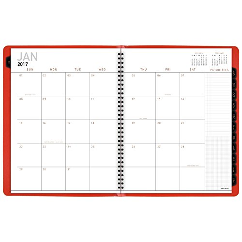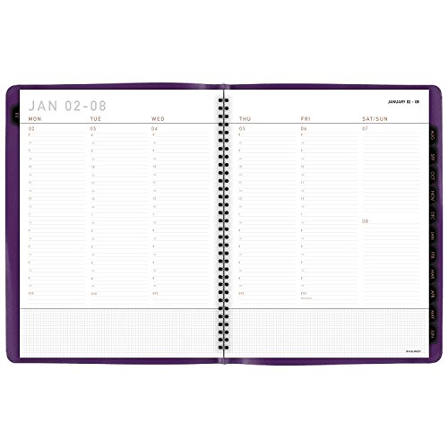 -. Feature : Contemporary Fashion Weekly / Monthly Appointment Book / Planner helps you balance work and home life all year long and cover 12 months, from January through December. Page size is 8.25 in. x 10.88 in. / Weekly two page spread features large ruled daily blocks to keep you organized. Schedule half-hourly appointments from 8:00 a.m. - 6:00 p.m. to give you all day scheduling capability Monday through Friday. / One month per two page format include large ruled daily blocks with Julian dates to keep scheduling organized and notes space for jotting down quick notes, reminders and to-do's. Features a past and future months reference calendar for quick and easy date checking. / Special information pages include 3-year reference calendar, future planning, important dates, contacts, notes, meeting notes pages for note taking, project management and to keep all of your important information in one convenient location / P.R.Inted on quality paper that contains 30% post-consumer material that resists bleed. Quality wire binding and wrap around suede-like cover. Please note color choice is not available to customer, the color will be selected at random for you.