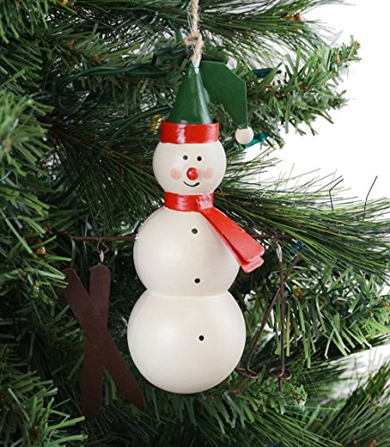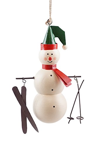 - Features a tin snowman with stick arms, holding ski poles in one hand & ski boots in the other hand