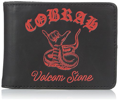 A classic bifold faux leather wallet featuring Volcom deboss and enamel logo designs. Multiple internal card slots. Dimensions- 3 x 4.25 inch