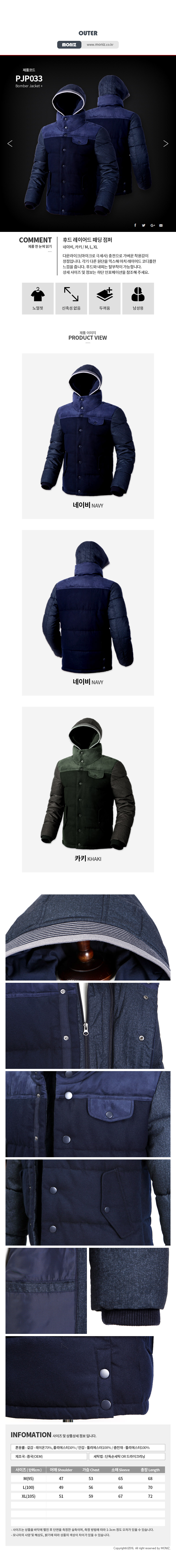 [Moniz] hood layered padding jumper PJP033