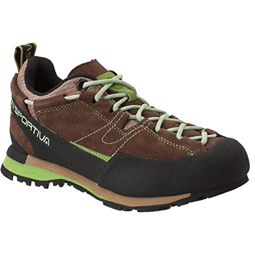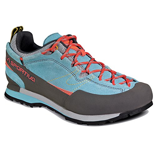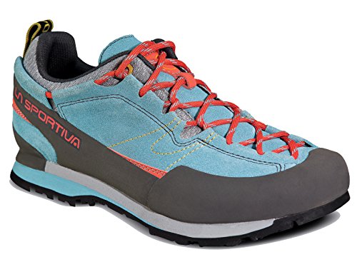 Studio : La Sportiva Publisher : La Sportiva Binding : Apparel Product Description Expertly traverse the field of troll-sized boulders with your expedition pack when you wear the La Sportiva Women's Boulder X Approach Shoe. Get a grip on any rock in any condition with the specially designed rubber tread outsole and Impact Brake System, even with forty pounds on your back. With that much weight, your feet will get a kick out of the extra cushioning in the footbed and midsole, so you can make it to base camp before all the light fades. The Boulder X's tough leather upper and toe rand withstand a whole mountain range of abuse for the roughest approaches on the planet. 0