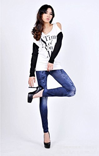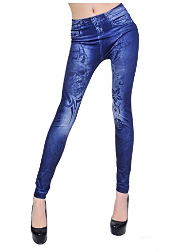 -. Title : JBCレディースプリントデニムパンツ[シームレス花柄スカルプリント] Tattooレギンス