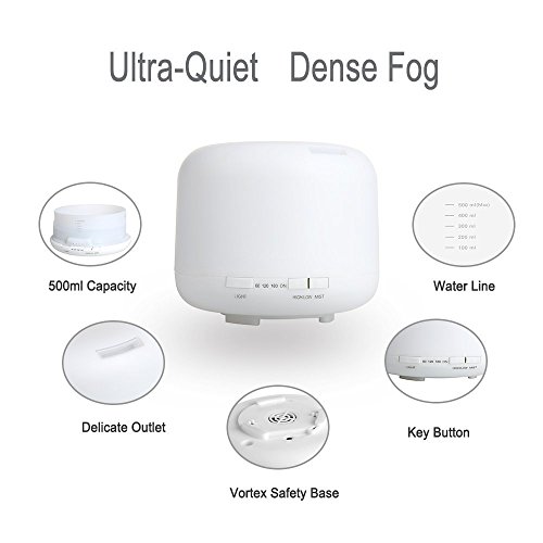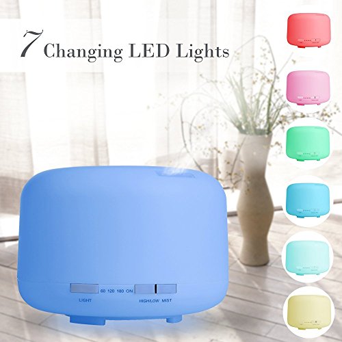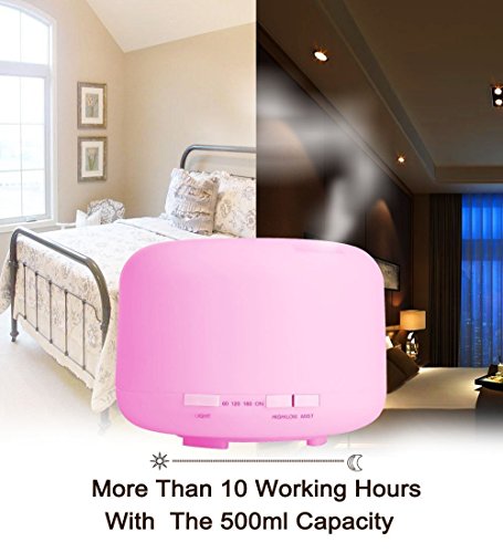 Bormart 500ml Aromatherapy Essential Oil Diffuser, Aroma Cool Mist Humidifier with Waterless Auto Shut-off and 7 Color LED Lights Changing for Office, Home, Baby, Yoga, Spa