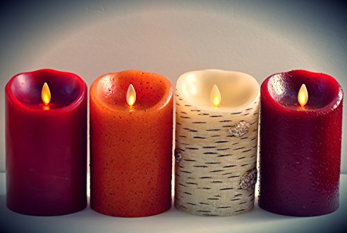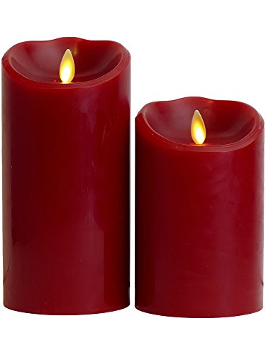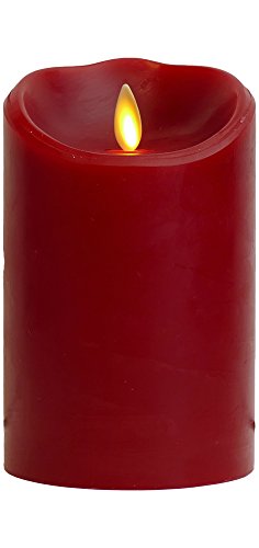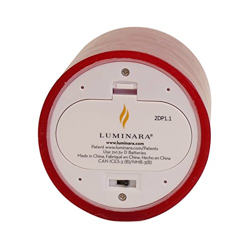 Luminara red flameless candle made of cinnamon scented paraffin wax. Indoor use only. 500 hour run time per each Luminara cinnamon candle per set of batteries.