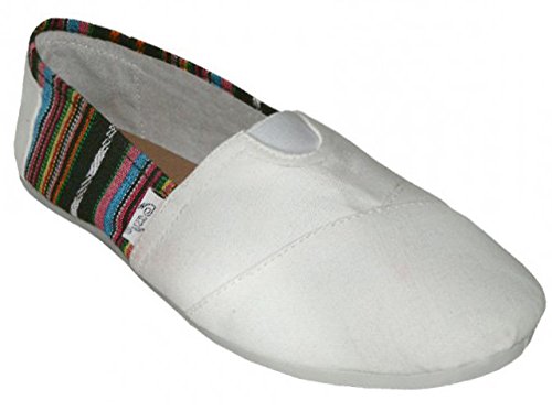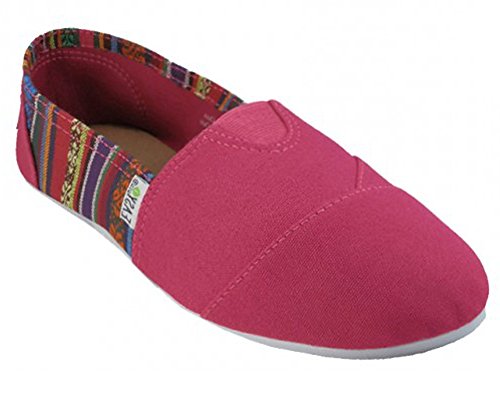 Product Description Easy USA Womens Classic Canvas Slip On Casual Shoe Canvas upper with Woven design Elastic "V" for easy fit Cushion insole for maximum comfort Textured sole provides a no-slip grip 0