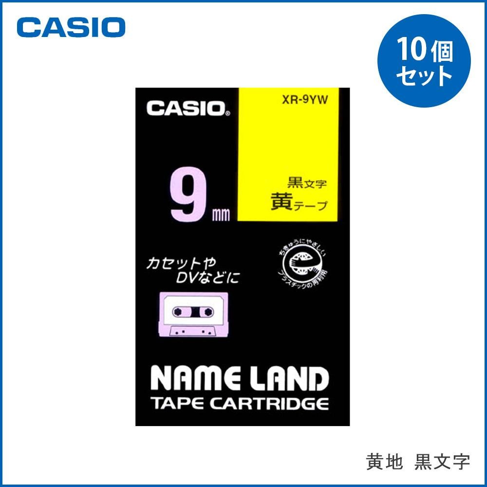 「ネームランド」用テープカートリッジです。デスクまわりの整理に使える9mm幅。 製造国:中国 素材・材質:樹脂 商品サイズ:テープ:長さ8m、幅9mm(1個あたり) 仕様:【色】テープ:黄、文字:黒 セット内容:10個セット ※サプライヤー直送品【商品名】CASIO カシオ ネームランドテープ9mm幅 (黄地/黒文字) XR-9YW ×10個セット