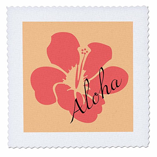 3dRose qs_53522_1 Peach Hibiscus Aloha Flower Floral Print Tropical Art Hawaiian Quilt Square, 10 by 10"