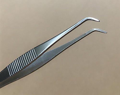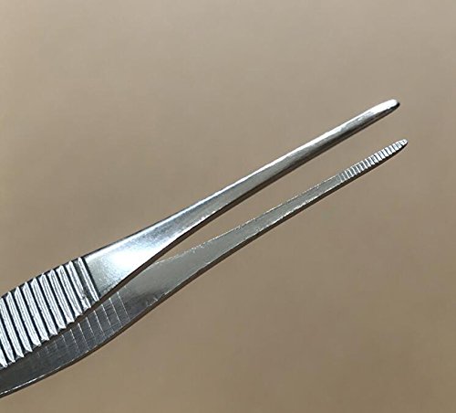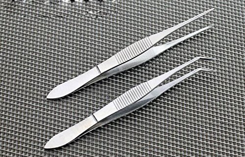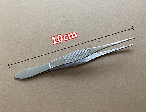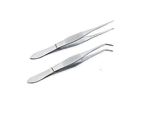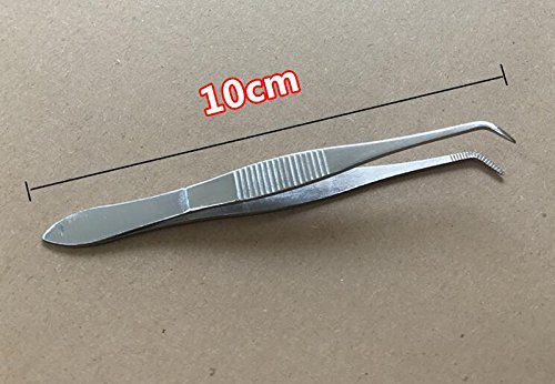 1 Set(2PCS)10cm/3.9'' Professional Stainless Steel Medical Dental Forceps Tweezers-Multifunction Straight Tip and Curved Tip General Purpose Tweezer Eyebrow Removal Tool(Silver)