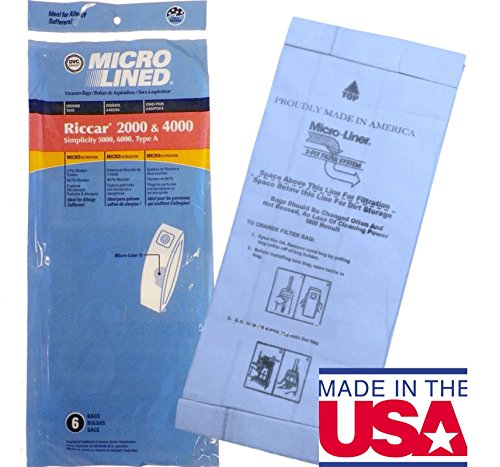 Riccar 2000, 4000, Vibrance, Simplicity 5000, 6000, Symmetry Series Type A Upright Bags, 6pk.