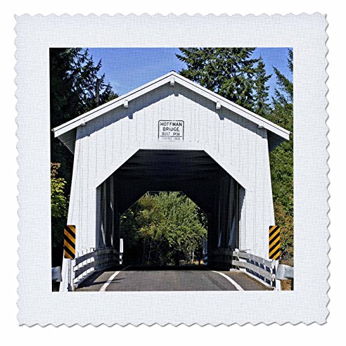 3dRose qs_93889_6 Historic Hoffman Covered Bridge Near Albany Oregon-US38 MGI0042-Mark Gibson-Quilt Square, 16 by 16-Inch