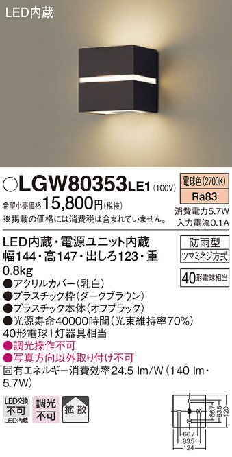 ●材質/色/仕上げ:アクリルカバー(乳白)・プラスチック枠(ダークブラウン)・プラスチック本体(オフブラック)