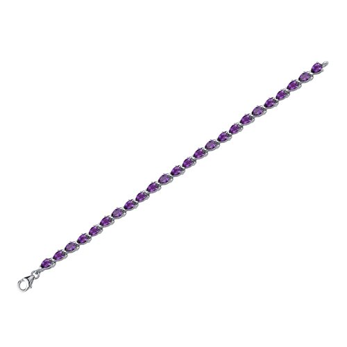 Gemstones: Genuine Amethyst: 24 pieces, Pear Shape, 6x4 mm, 7.75 carats total weight. Gemstones have a deep rich color and tremendous fire. Bracelet: 12.40 grams Pure Sterling Silver Rhodium Nickel Finish with .925 stamp 7 1/4 length, 3/4 width. Bracelet features one of a kind design with a beautiful White Gold finish. 100% Money Back Guarantee. Includes a Signature Gift Box.Feature