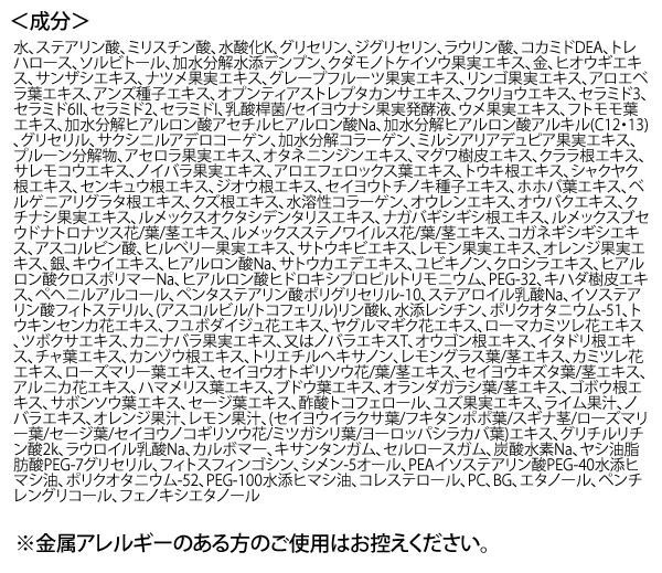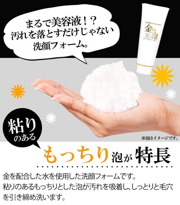 | 金を配合した水を使用した、粘りのあるもっちり泡が特徴の洗顔フォームです。自然の恵みをバランスよく101種類(100種類+金)も配合し、ナチュラルな美しさを引き出します。泡ネットで泡をたててくるくるとマッサージするように洗顔してください。 |