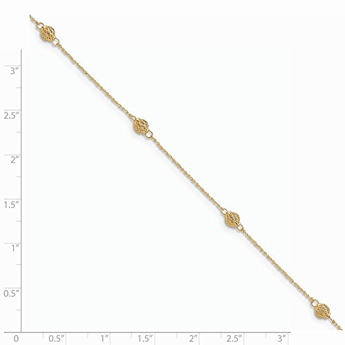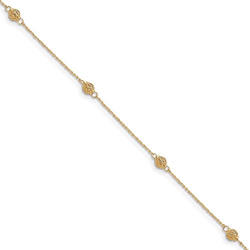 14k Bead with 1in ext Anklet. Material: Primary - Purity:14K|Finish:Polished|Chain Length:10 in|Chain Width:4 mm|Clasp /Connector:Spring Ring|Extender Length:1 in|Feature:Solid|Manufacturing Process:Machine Made|Material: Primary:Gold|Product Type:Jewelry|Jewelry Type:Anklets|Sold By Unit:Each|Anklet Type:Anklets with Stations|Texture:Diamond-cut|Material: Primary - Color:YellowFeature