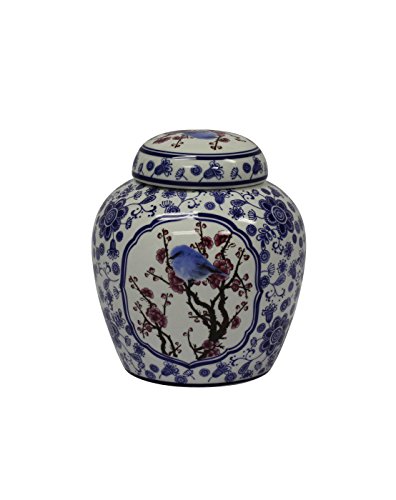 Sagebrook Home 12053-03 Decorative Ceramic Covered Jar, 8.5" x 8.5" x 9.75", Blue/White/Crimson