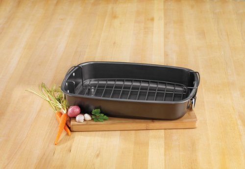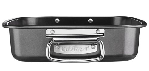 The new Cuisinart Ovenware Classic 17" X 12" Roaster with removable rack is ideal for turkey dinners or large roasts. This roaster provides the perfect solution for everyday family meals, parties and holiday celebrations. Lifting is made safe and easy with sturdy construction and wide-grip handles. It's fully nonstick design makes cleanup convenient. Make and bake holiday classics or prepare family favorites any time of the year with this versatile must-have.Feature