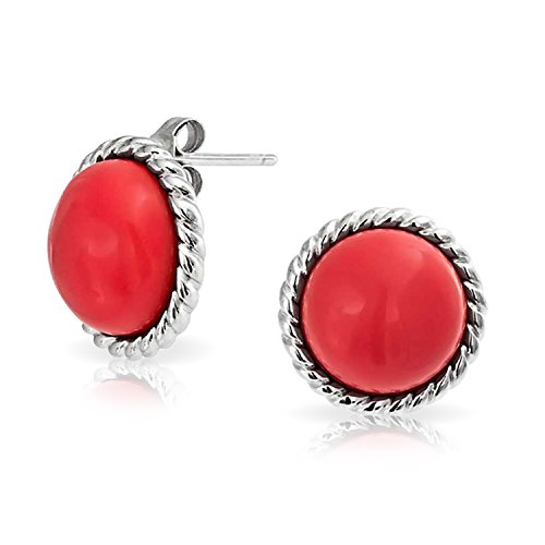 If vivid color is what you need to spice things up, these round red synthetic coral stud earrings will do the trick. Our Bali style sterling silver coral studs for women are a wonderful addition to any chic jewelry box. These electrocoated sterling silver dangle earrings are rhodium plated to resist tarnish and show off a 12mm synthetic red coral perfectly.