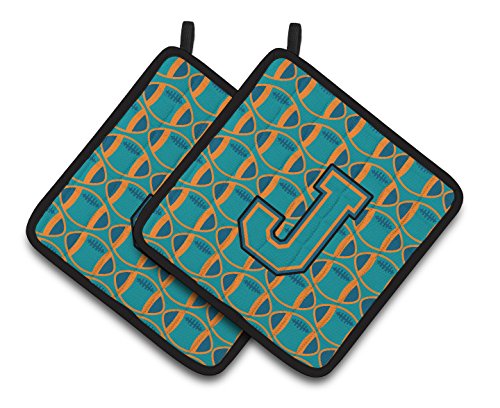 Caroline's Treasures Letter J Football Aqua, Orange & Marine Blue Pair of Pot Holders CJ1063-JPTHD, 7.5HX7.5W, Multicolor