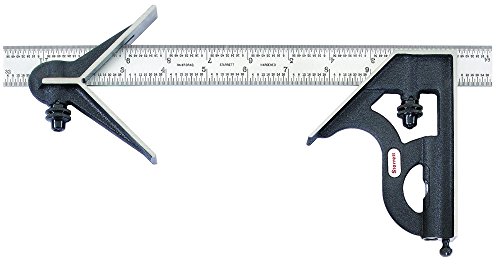 Starrett C11HC-12-4R Cast Iron Square Head And Center Head With Satin Chrome Blade Combination Square, Black Wrinkle Finish, 4R Graduation, 12" Size