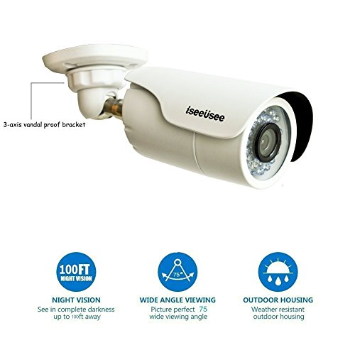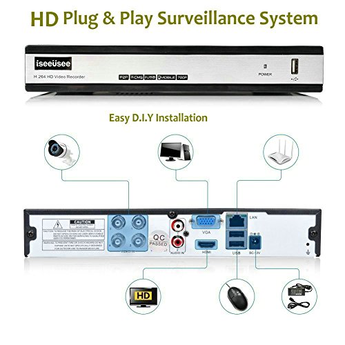 -. Binding : Electronics -. Brand : ISEEUSEE -. Feature : EASY USE - Completely plug & play live view monitoring locally or remotely from PC, smart phone or tablet with push notification/alarm Pro App / SHARP CAMEAR - Weather-proof HD night vision cameras with vandal-proof 3-axis bracket for Indoor / Outdoor Use / CRISP IMAGE - HD recording resolution support motion activated recording / DIY READY - all cables and accessories Included to install yourself / WARRANTY - FCC Certified with UL Compliant Power Adapter, one Year Quality Guarantee, Lifetime 24/7 ISEEUSEE Technical Support -. Label : KOCODA TECHNOLOGY CO LTD -. Manufacturer : KOCODA TECHNOLOGY CO LTD -. Model : PRO1080-86-30WB -. MPN : PRO1080-86-30WB -. PackageQuantity : 1 -. PartNumber : PRO1080-86-30WB -. ProductGroup : Photography -. ProductTypeName : SURVEILANCE_SYSTEMS -. Publisher : KOCODA TECHNOLOGY CO LTD -. Studio : KOCODA TECHNOLOGY CO LTD -. Title : ISEEUSEE 8 Channel 1080N HD DVR Video Recording System HDMI Output 6 x 1500TVL Outdoor Night Vision Cameras and Free Pro APP Home Security Camera Surveillance Kits No Hard Drive Preinstalled