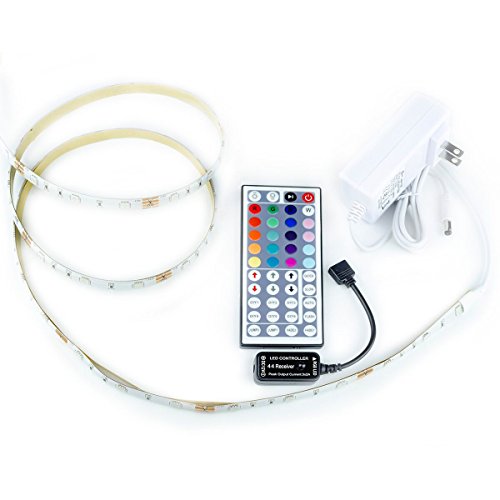HitLights Weatherproof LED Light Strip Starter Kit - RGB Multicolor SMD 5050 - 16.4 Ft Roll, 44 Key Controller and Power Supply - 150 LEDs, IP-65 - Color Changing LED Tape Light