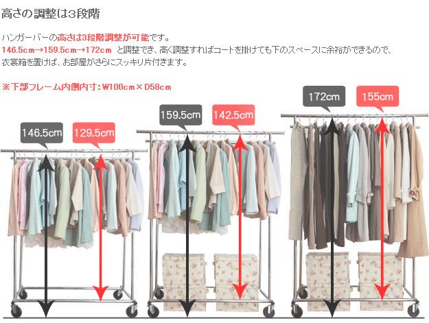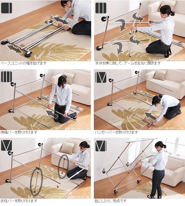 商品について:シンプルな構造で組立が簡単。幅、高さともに伸縮するので掛けるものを選びません☆各ハンガーバーの耐荷重35kgで冬物も安心して掛けられます♪大きなキャスターが付いているのでお掃除や模様替えも楽々!