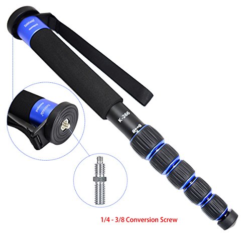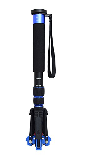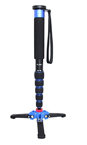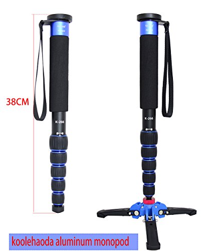Koolehaoda Lightweight Portable 63-inches Camera Aluminium Monopod with Folding Three Feet Support Stand. 6-section Leg , Leg max diameter: Φ28MM, Folding length: 420mm (16.5 ").(K-266 Blue)