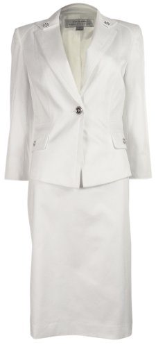Studio : Tahari Publisher : Tahari Binding : Apparel Product Description Set includes jacket and skirt. Jacket features full lining, notch lapel, optional length sleeves, cotton blend fabric, faux front pockets, back belt, and one button front closure. Skirt features full lining, back center vent, pencil silhouette, cotton blend fabric, side buckle detailing, and a concealed back zipper with hook eye closure. 0