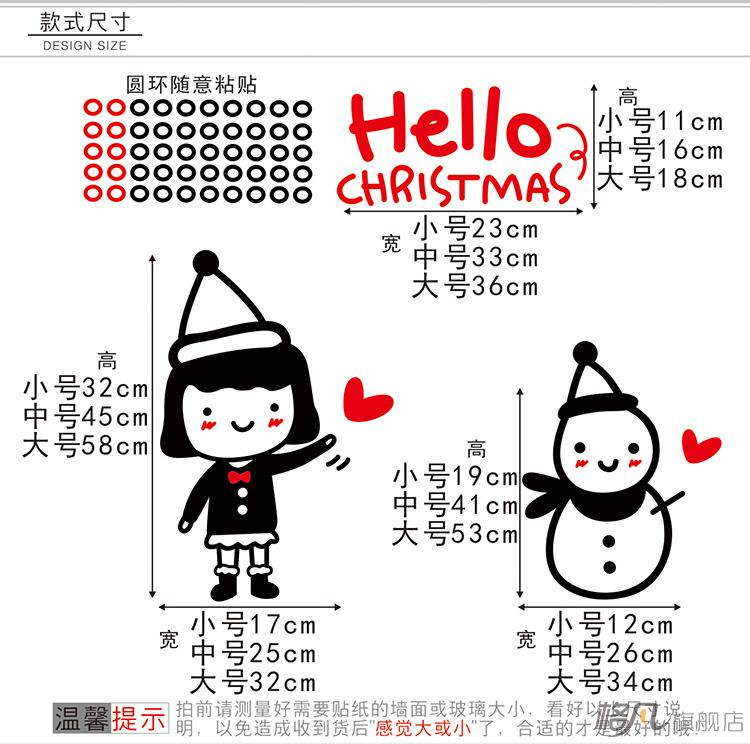店铺橱窗可爱圣诞雪人门贴花玻璃贴纸圣诞节装饰品雪花麋鹿贴画