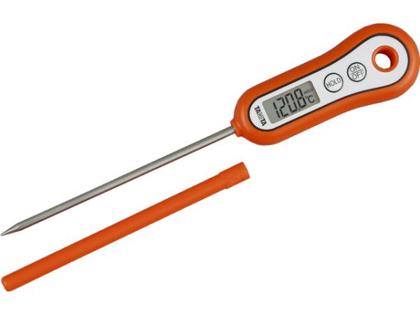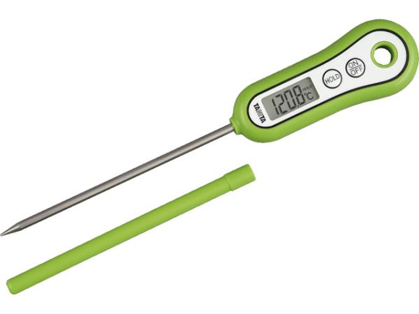 | IPX2の防滴機能付き。はかった温度が見やすいホールド機能付き。キッチンを楽しくするポップなカラー。なかみの温度チェックで安心調理! |