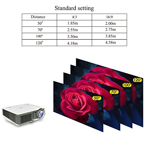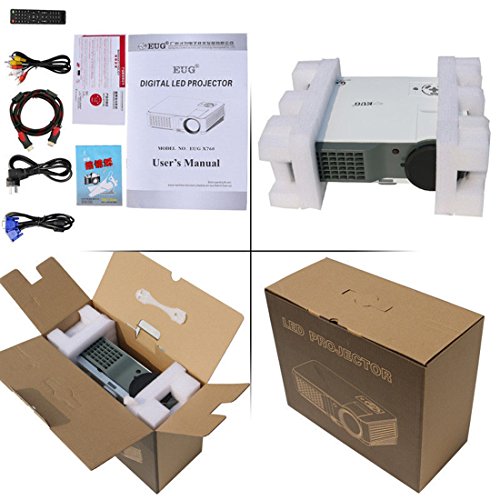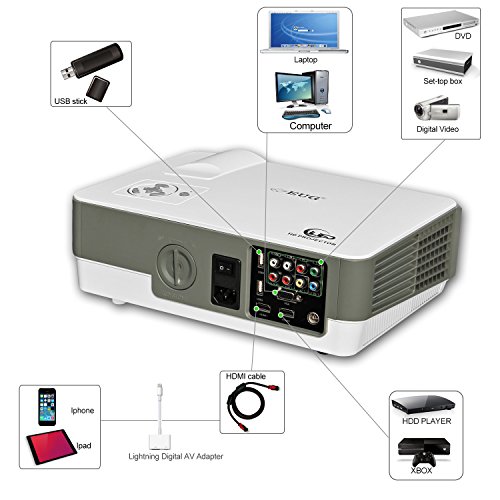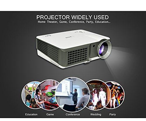 Product Description: The projector will make your presentations shine with its 2500 lumens bright output and fabulous 2000:1 contrast ratio. It delivers amazingly bright resolution presentations with vibrant colors and sharp, clear text, graphics and video. Perfect for playing games, home schooling, watching TV, small meeting, party, outdoor projection at night, and etc.