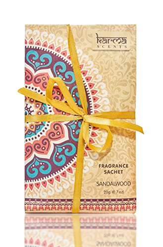 Premium Sandalwood Scented Sachets for Drawers, Closets and Cars, Lovely Fresh fragrance, Lot of 12 Bags, By Karma Scents