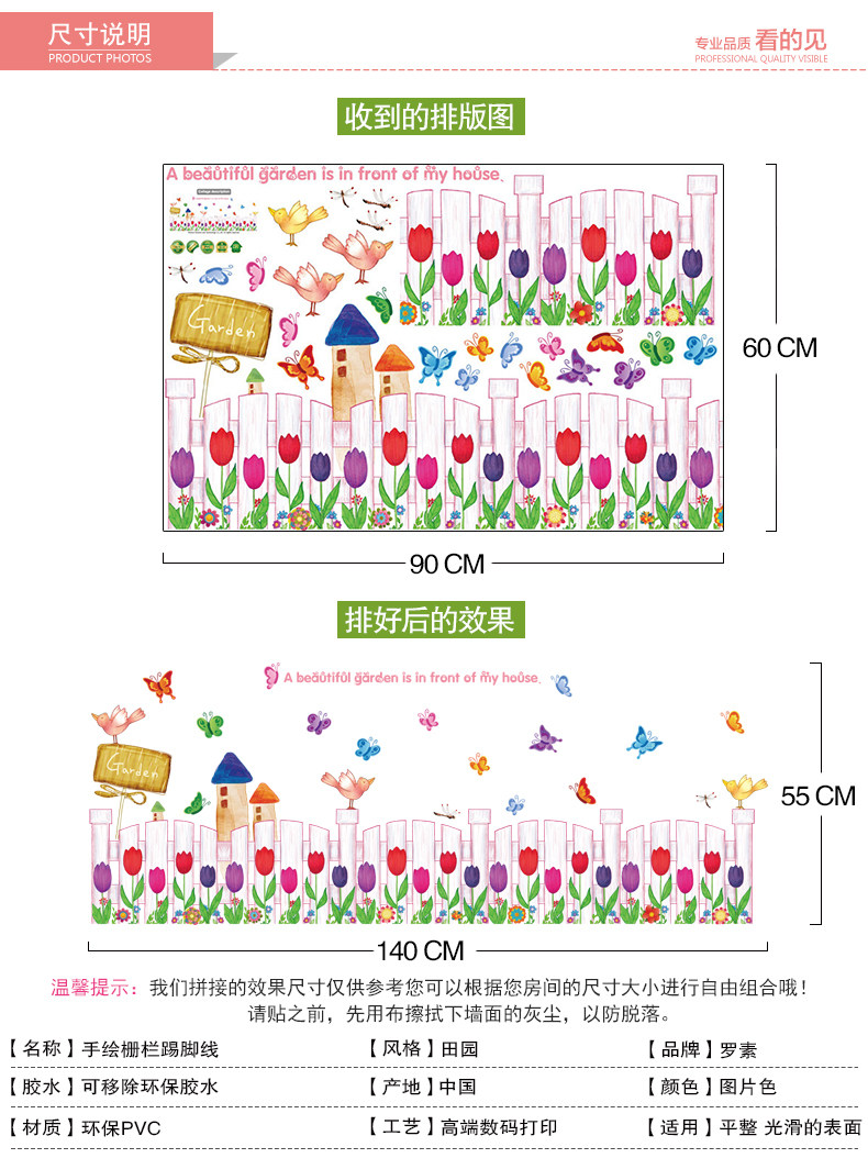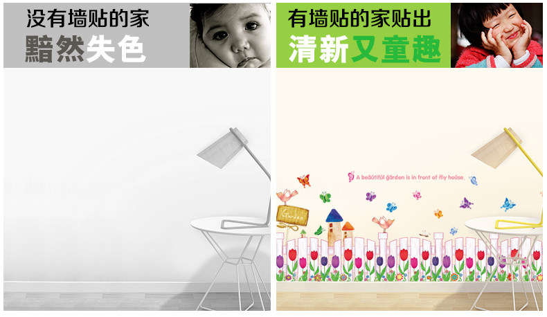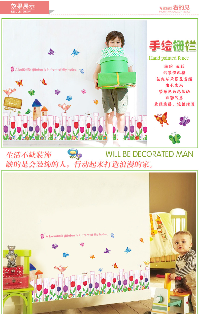 手绘栅栏腰线贴 卧室玄关走廊踢脚线墙贴幼儿园学校教室装饰贴画