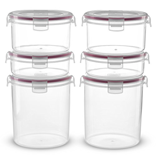 Komax Biokips Tall Large Dry Food Storage Round Containers (set of 6) - Airtight, Leakproof With Locking Lids - BPA Free Plastic - Microwave, Freezer and Dishwasher Safe