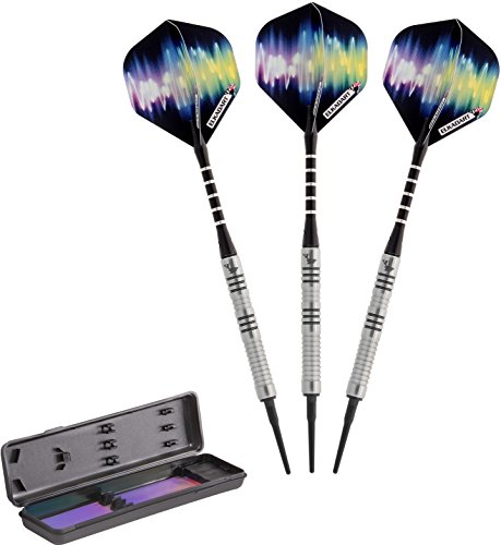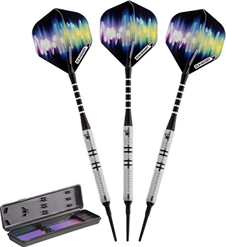 -. Feature : Designed with high quality, 80% tungsten and 20% nickel barrels which offer exceptional balance and styling in a slim profile / Each barrel has strategically placed knurled bands, deep grooves and rings that make excellent gripping points and encourages consistent hand placement / Lightweight, aluminum shafts feature locking holes which allow for a tighter fitting that improves stability and greatly reduces the need to retighten during play / Features 2BA Tufflex Tips II soft tip dart points that have a reinforced cone, making them extremely strong and durable; Each soft tip dart weighs 16 grams / Darts are fashionably stored and protected in the slim-profile, hard-shell case; Proudly designed, manufactured, assembled and packaged in England